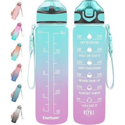 Enerbone 32 oz Drinking Water Bottle with Times to Drink and Straw, Motivational with Carrying Strap, Leakproof BPA & Toxic Free, Ensure You Drink Enough Water for Fitness Gym Outdoor